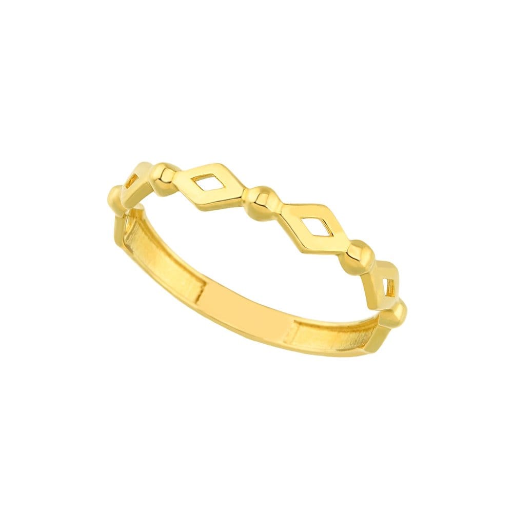 14K Real Solid Gold Dot Rhombus Ring for Women