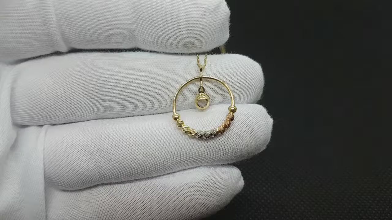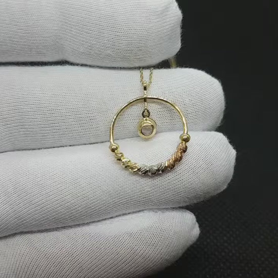 - Circle Necklace With itallian Balls and Swinging CZ Stone is made with high quality 14K real solid gold.