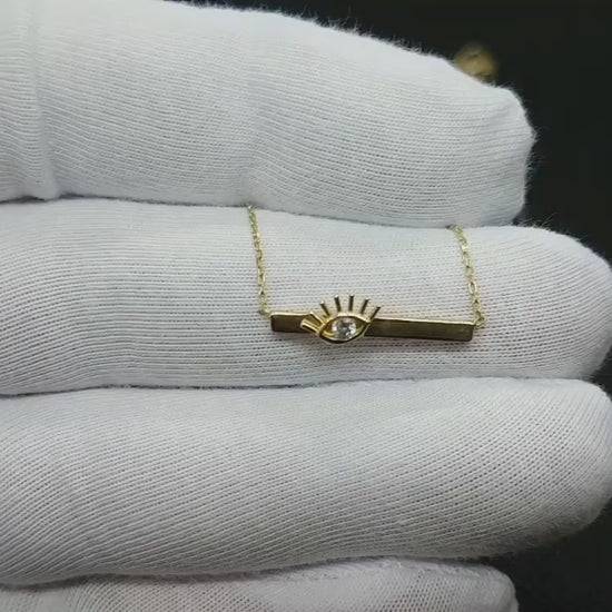 - Eye eyelash bar necklace is made with high quality 14K real solid gold.