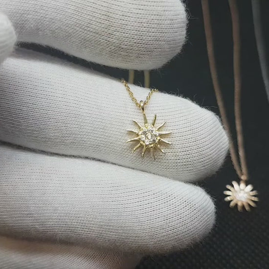 - Dainty, delicate, tiny, charm, cute, and trendy sun pendant necklace has been artfully designed for timeless jewelry and you can order in three different colors, yellow, white, and rose.