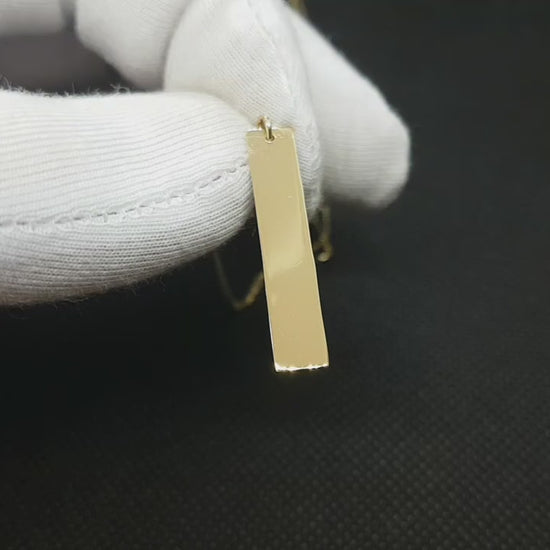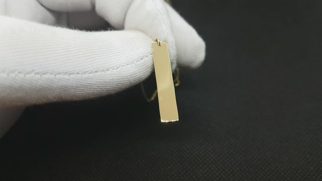 - 14K solid gold vertical personalized pendant comes with a beautiful matching free 14K real solid gold chain.