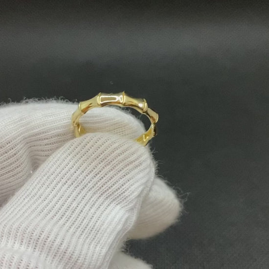 14K Real Solid Gold Bamboo Ring for Women