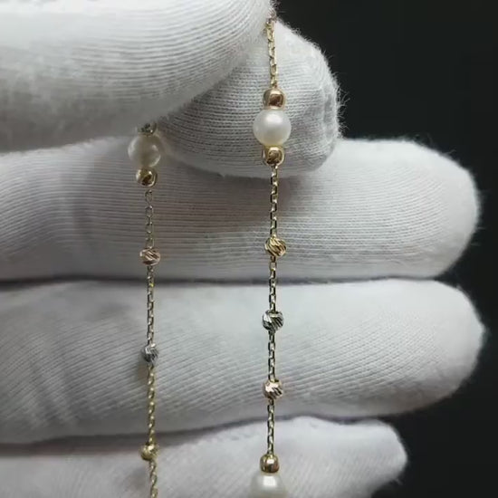 - Beaded Pearl Bracelet with Italian Balls bracelet is made with high-quality 14K real solid gold. Beaded Pearls are freshwater cultured pearls.