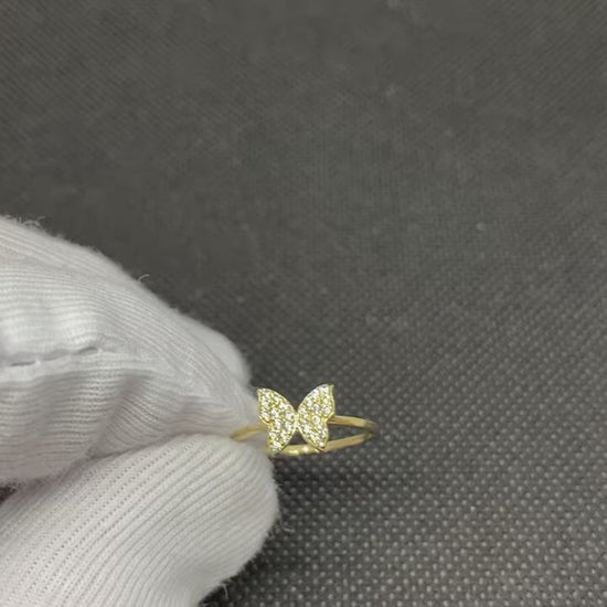 - Butterfly Ring for Women is made with high quality 14K real solid gold and decorated with white cubic zirconia stones.