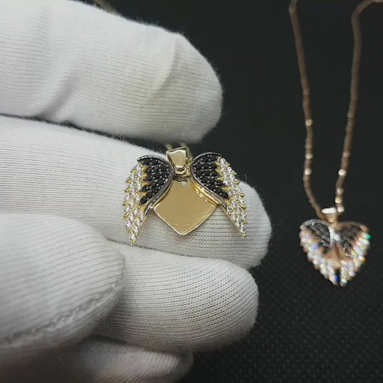 - Personalized Double Angel Wings and Heart is made with high-quality 14K real solid gold.