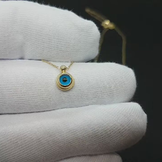 14K Real Solid Gold Evil Eye Necklace for Women | Turkish Evil Eye Pendant