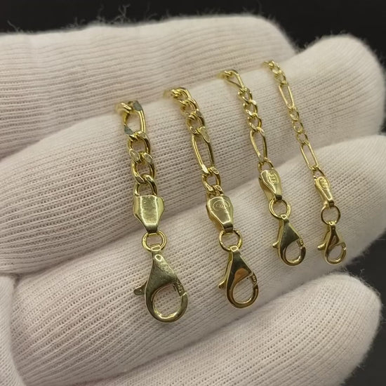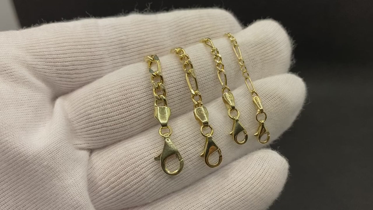 - Figaro chain bracelet is made with high quality 14K real solid gold, including its Lobster claw closure. We also listed Figaro chain necklace.