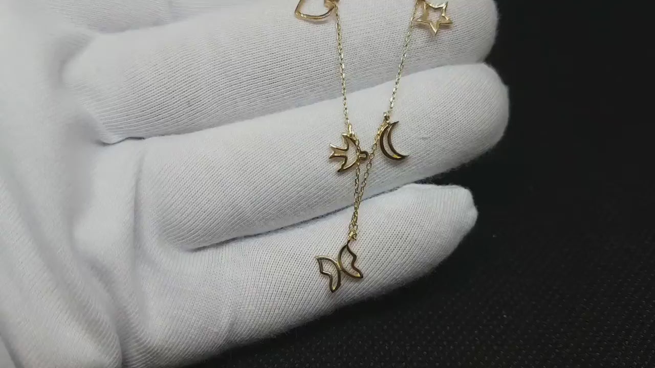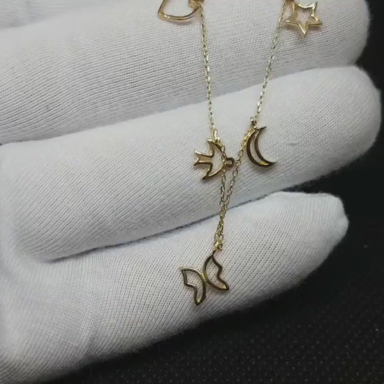 - Charm Bracelet for Women with Butterfly Star Moon Heart Swallow Pieces is made with high quality 14K real solid gold. Also , we have listed a necklace with the same design.