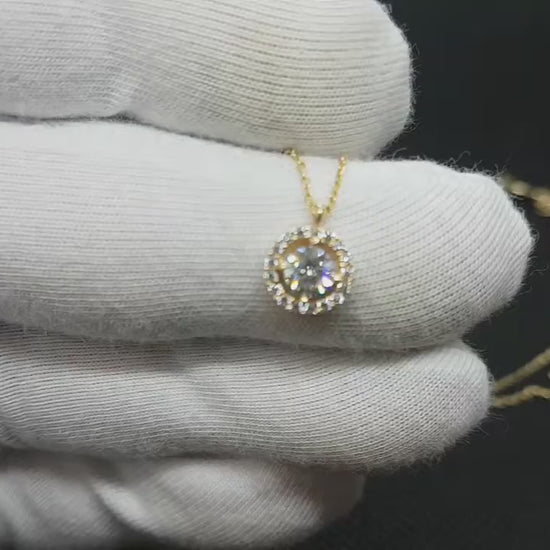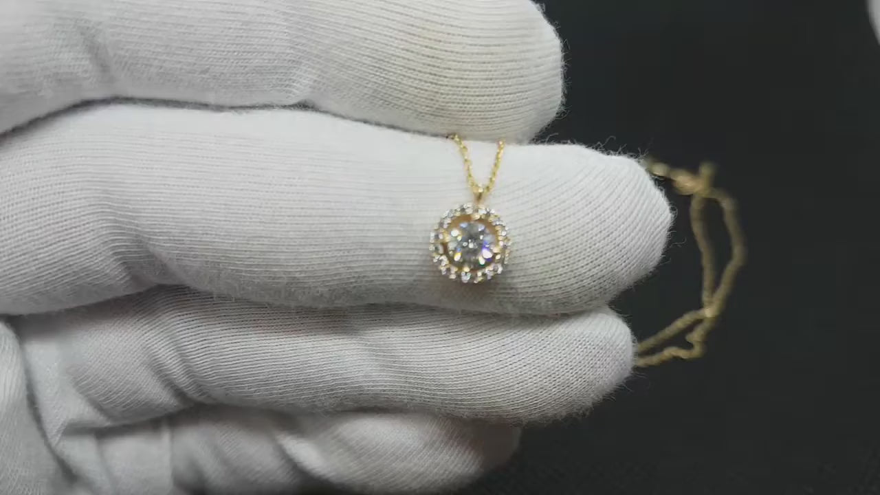 14K Real Solid Gold Halo Solitaire Necklace for Women
