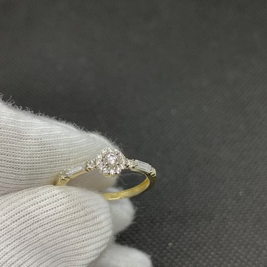 - Dainty, delicate, elegant and 14K solid gold CZ Halo Solitaire and Baguette ring is a perfect example of a minimalist women's ring.