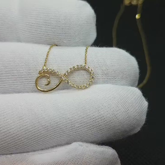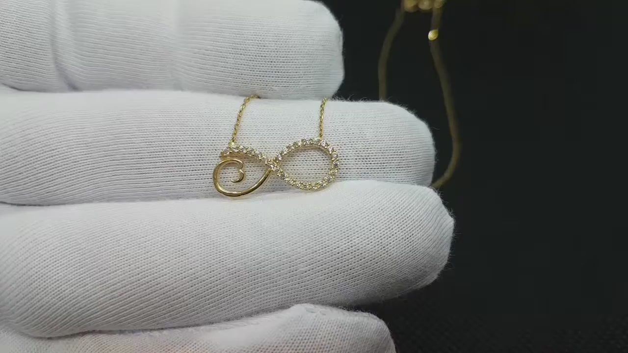 - Infinity necklace for women is made with high-quality 14K real solid gold and decorated with white cubic zirconia stones.
