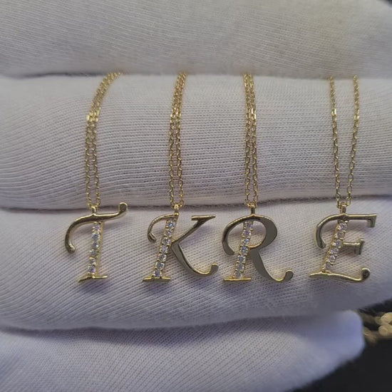14K Real Solid Gold CZ Custom Letter Initial Necklace for Women
