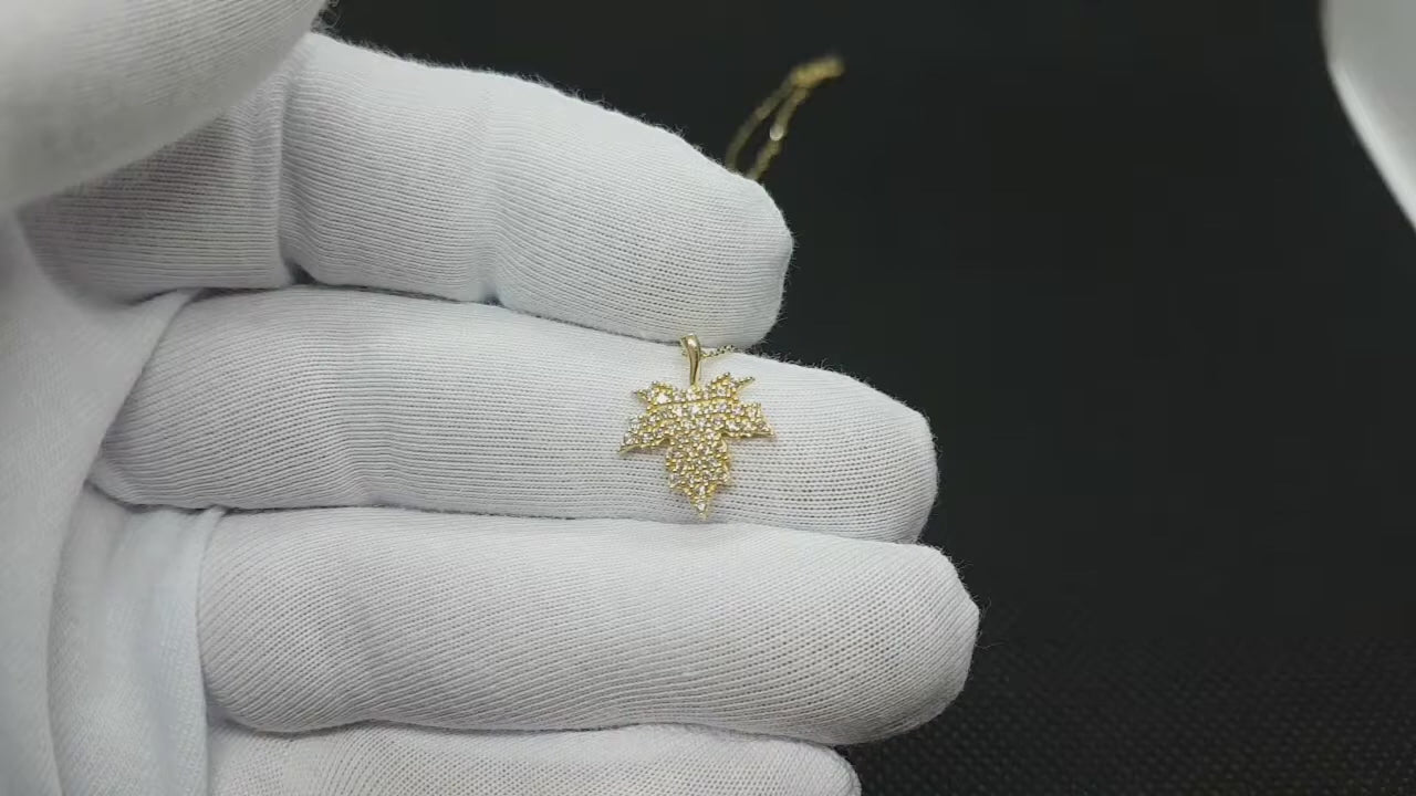 - Maple leaf pendant necklace are decorated with white cubic zirconia stones. [Dimensions; Height :0.59 Inch , Width:0.55 Inch ]