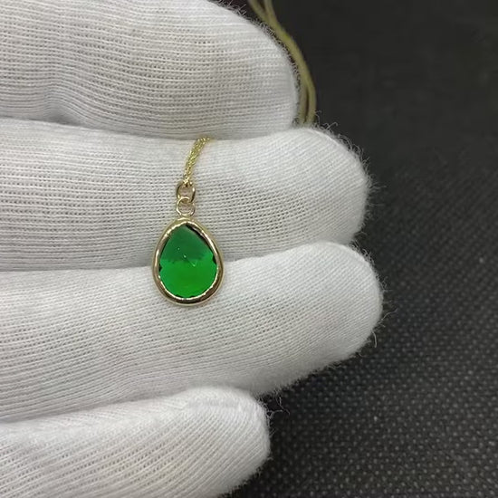 14K Real Solid Gold May Birthstone Emerald Necklace for Women