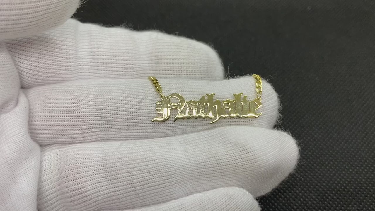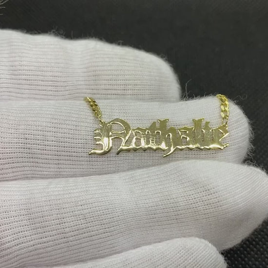 - Old English name necklace is made with high quality 14K real solid gold including Gourmet chain.