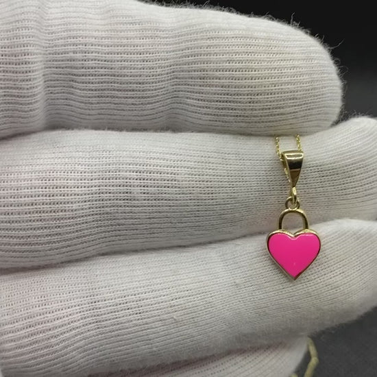 - Pink heart pendant necklace is made with high quality 14K real solid gold and pink enamel. We also listed Turquoise Heart Necklace.