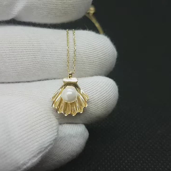 14K Real Solid Gold Seashell Pearl Necklace for Women