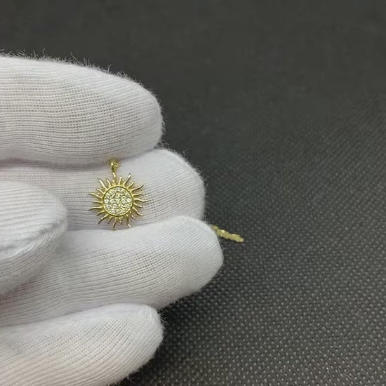 - Sun necklace is made with high-quality 14K solid gold and decorated with white cubic zirconia. [ Pendant size: Height: 0.47 Inches; Width: 0.47 Inches]