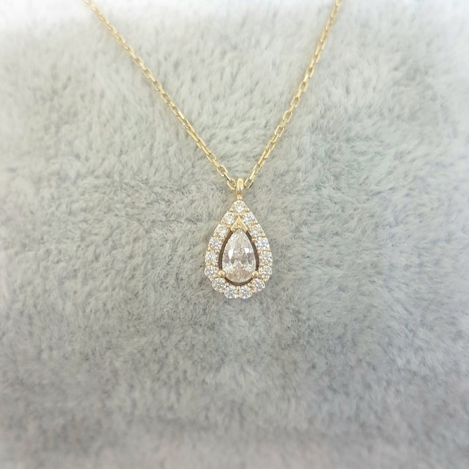 - 14K Solid Gold CZ Teardrop halo necklace is a perfect and special gift for your mother, girlfriend, wife, daughter, colleagues and of course for yourself on Mother's Day, Thanksgiving Day, Christmas Day, Valentine's Day, anniversary, birthday, graduation, prom and meditation gift.