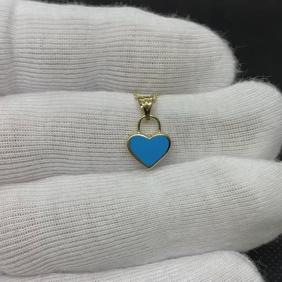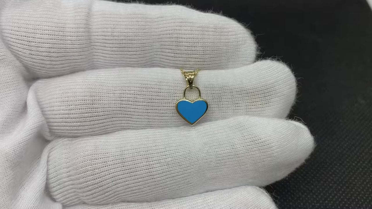- Turquoise Heart necklace is made with high-quality 14K solid gold decorated with turquoise enamel. Its thickness is 1MM.