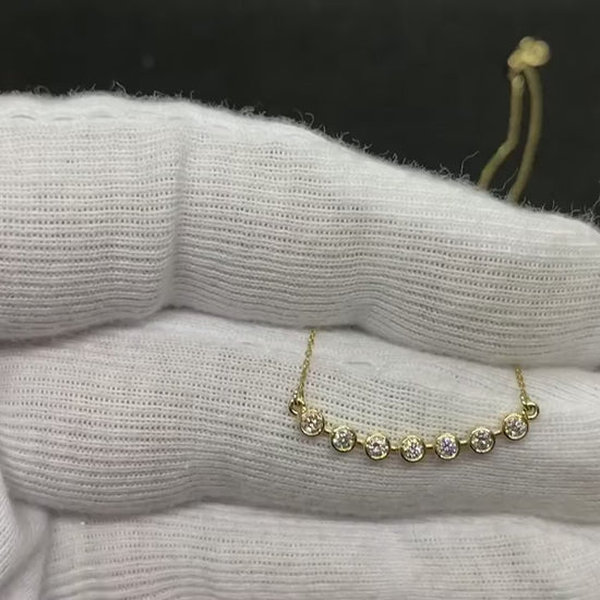 14K Solid Gold Curved Bar Bezel Diamond Necklace for Women