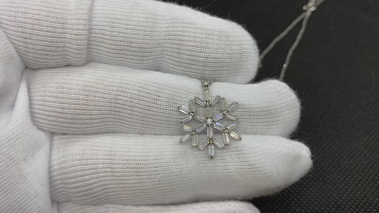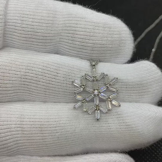 925K Sterling Silver Baguette Snowflake Necklace for Women