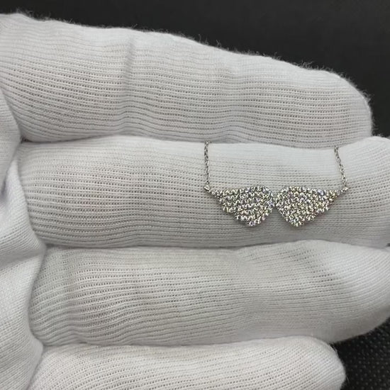 925K Sterling Silver CZ Pave Angel Wing Necklace for Women