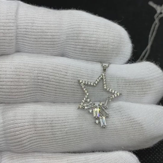 - Star necklace , one of its corner adorned with baguette stones women jewelry pendant is made with high-quality 925 Sterling Silver.