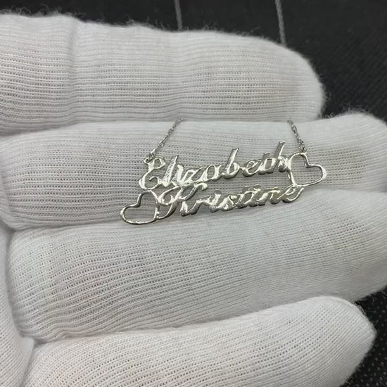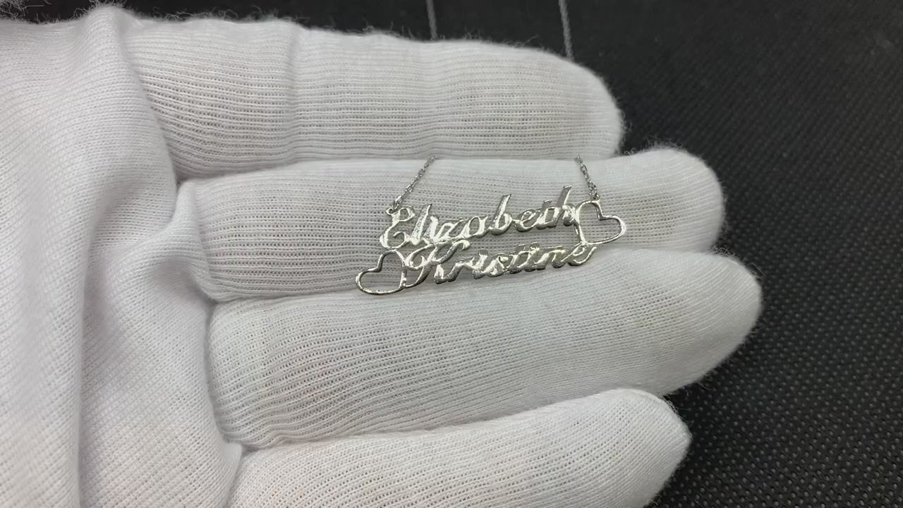 925K Sterling Silver Personalized Two Names Necklace with Heart