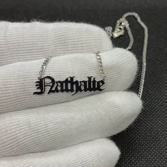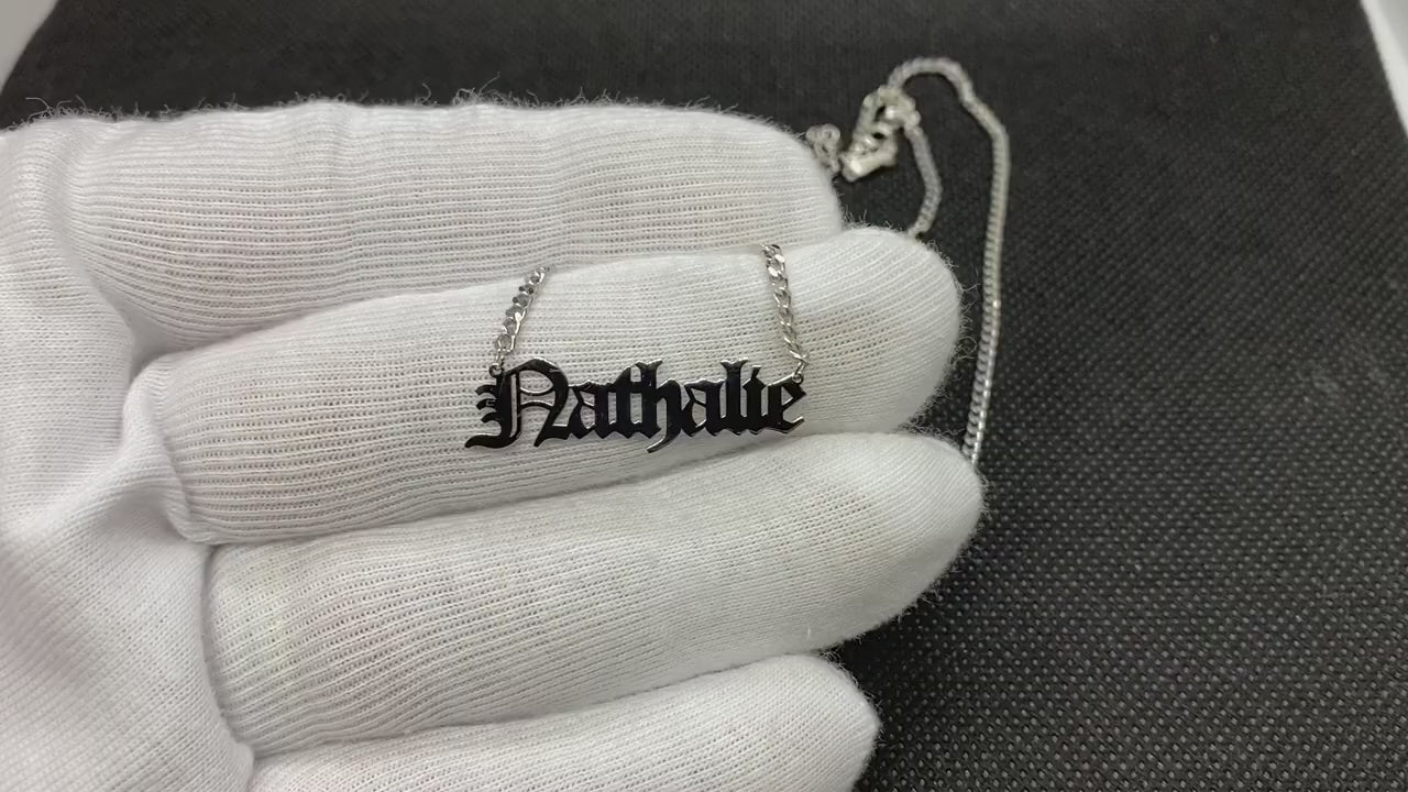 - Old English name necklace is made with high-quality 925 Sterling Silver including Cable, Figaro or Gourmet chain.