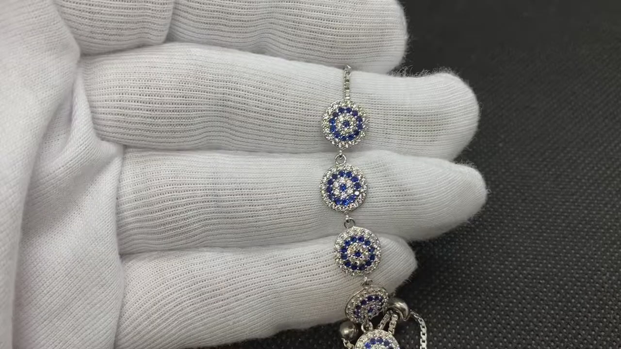 925K Sterling Silver Round Evil Eye Bracelet for Women