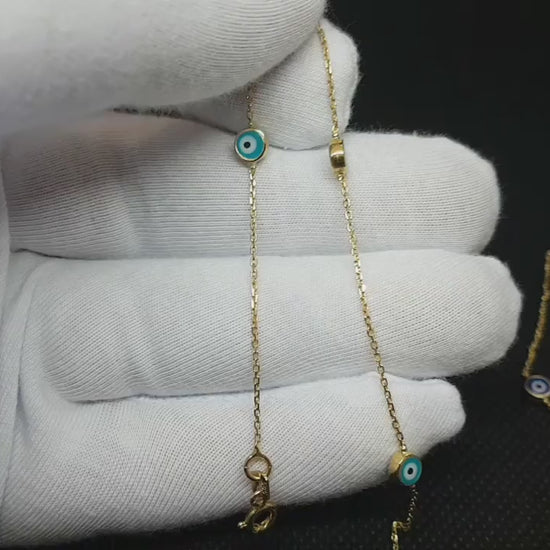 - Evil Eye Bracelet is made with high quality 14K real solid gold.