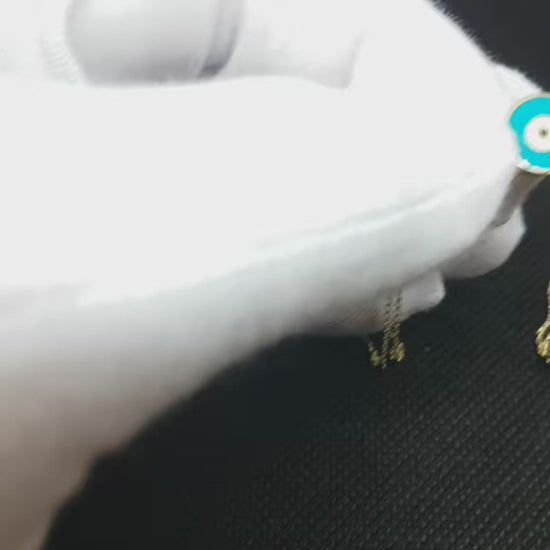 - Evil Eye jewelry is with decorated with turquoise, white and navy blue enamel. The round evil eye diameter is 0.39 Inches.