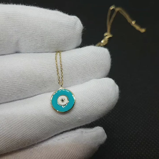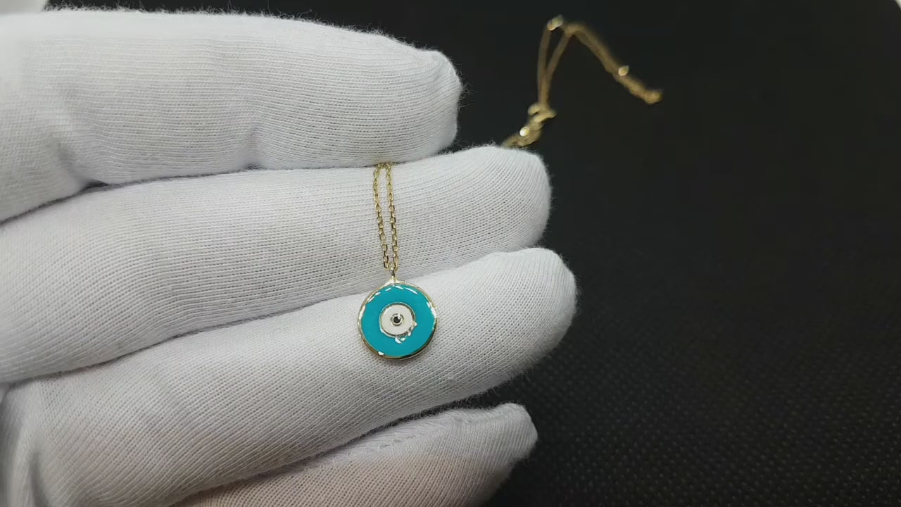 - Evil Eye Pendant Necklace for women is decorated with turquoise, white and navy blue enamel. Its diameter is 0.39 Inches.