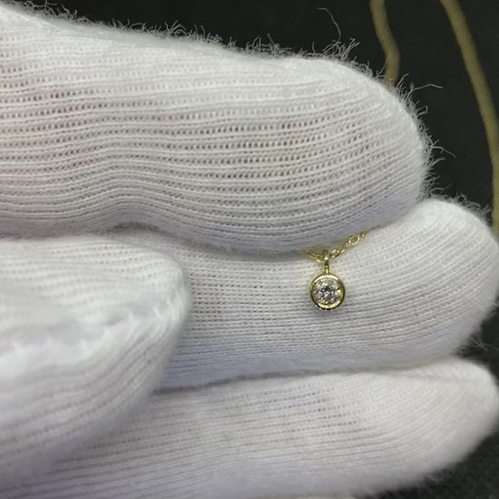 - Featuring a stunning Solitaire Diamond in a bezel, Diamond Solitaire Pendant Necklace is sure to catch the eye of anyone who sees it. The delicate gold chain necklace adds a touch of elegance and femininity to the design, making it the perfect necklace for women of all ages.