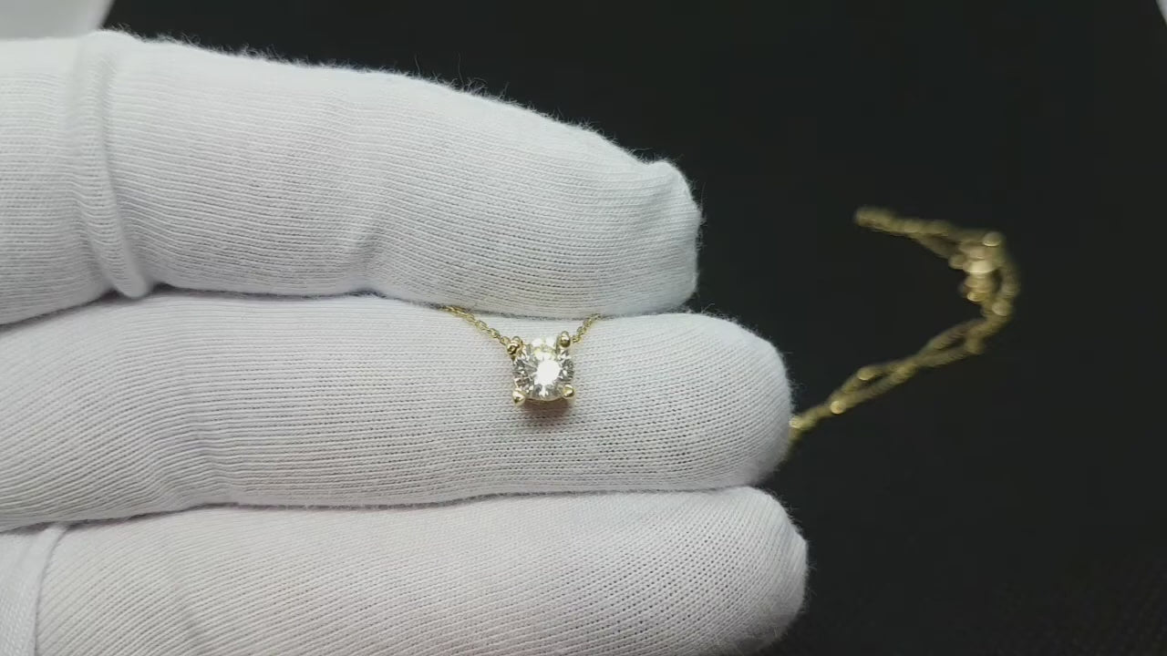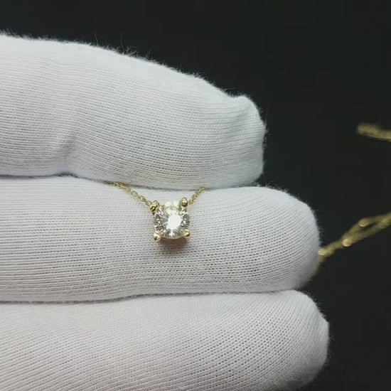 14K Real Solid Yellow Gold CZ Solitaire Necklace for Women