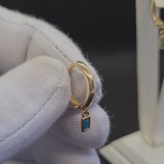 - 14K cute, charm, dainty, delicate, elegant and trendy Turquoise Baguette Drop Dangle Hoop Earrings for Women is a perfect example of a stylish women jewelry.